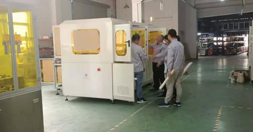 本次出貨的雙平臺(tái)全自動(dòng)絲印機(jī)包括四個(gè)部分:上料結(jié)構(gòu)區(qū)、CCD視覺對(duì)位區(qū)、全自動(dòng)印刷區(qū)、制品搬送區(qū)另再配有連接隧道爐的自動(dòng)流水線。